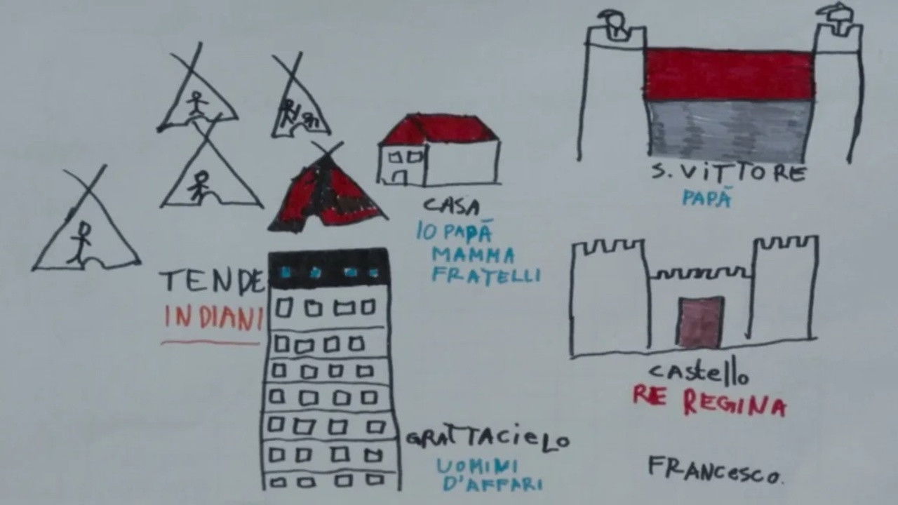 Children’s drawings made during complicated visits to their parents. For them San Vittore is a castle. San Vittore is an episode of the series The Roots of Violence which is also composed by: San Siro (2014) San Giorgio (2019)
