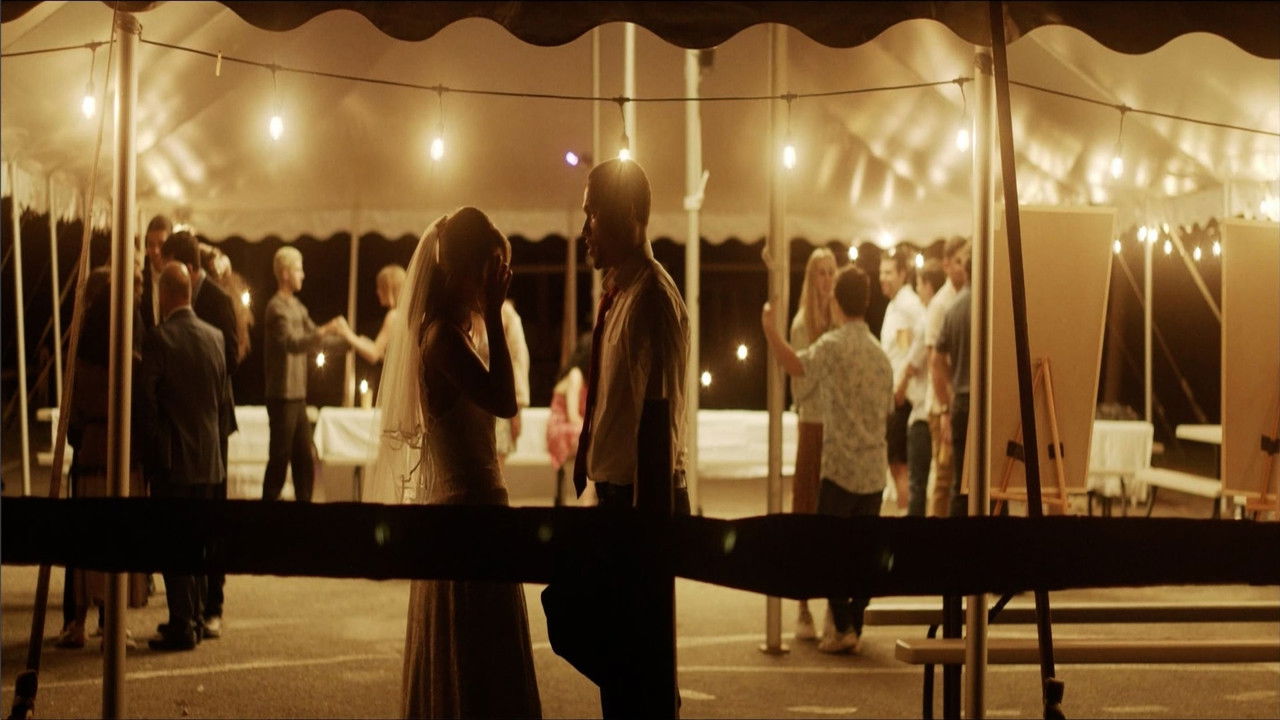 A bride steps away from her wedding reception to say hello and goodbye to someone from her past.