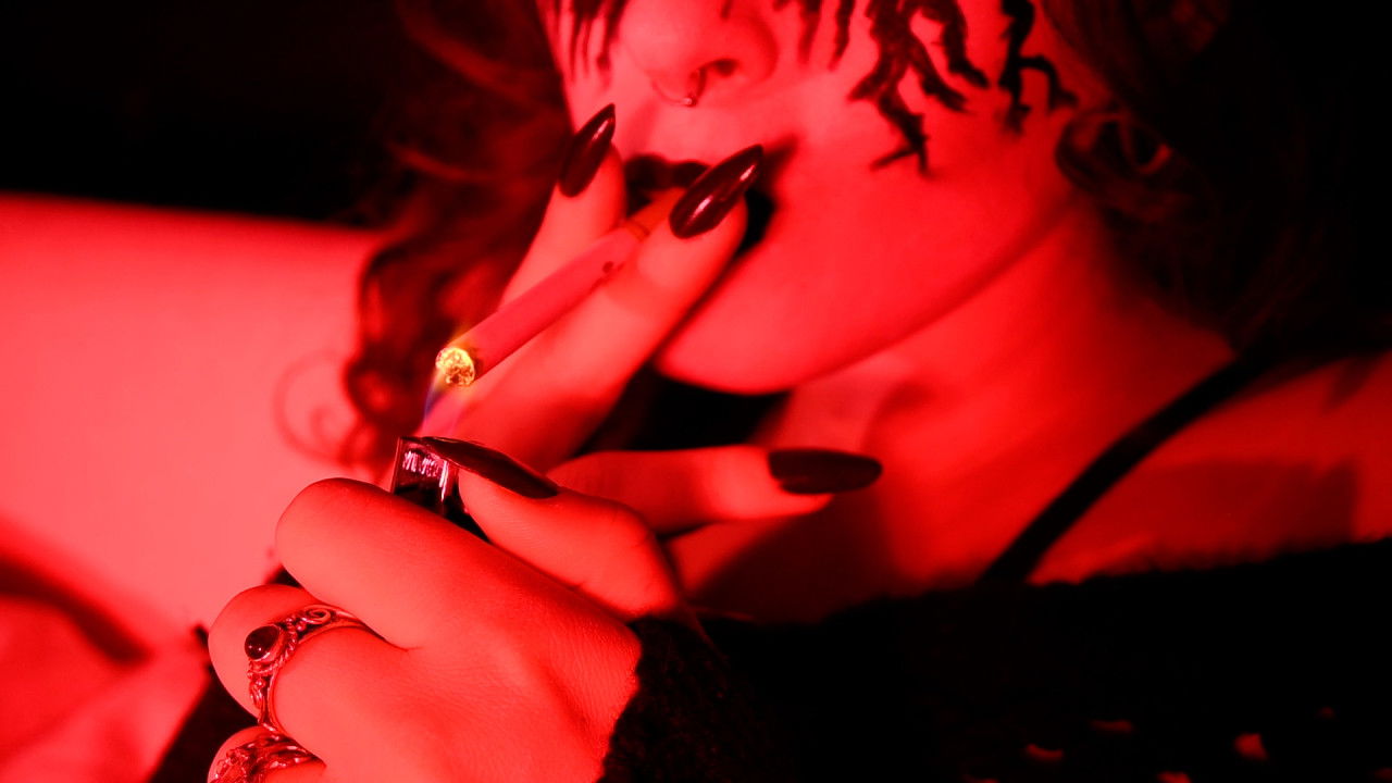 Roller blader / Death metal makeup woman