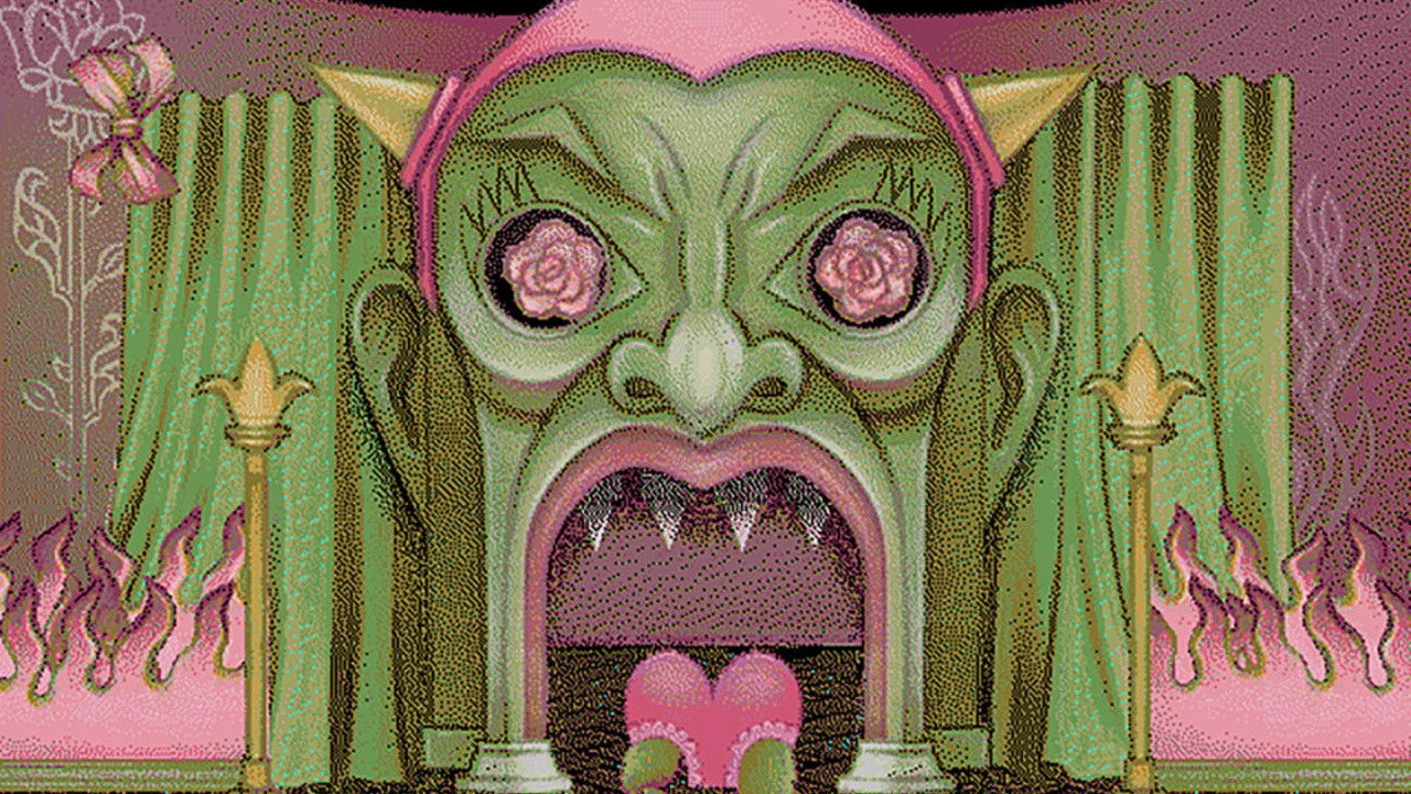 A green-skinned “sissy devil” probes the depths of internet intelligence, composing an “advanced search” on an antiquated search engine.