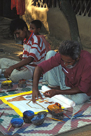 Charismatic and unconventional, Dukhushyam is a painter, composer, and singer whose nontraditional methods of reinvigorating the traditional art of scroll painting and story singing has had wide effects on the culture of of West Bengal.
