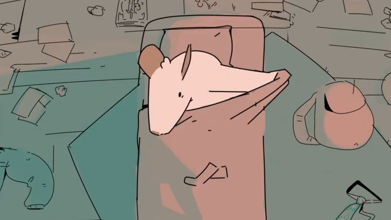 This film visualizes humanity’s quest to relentlessly pursue goals. In the human fight for progress, the march forward cannot be stopped, even when individual people become weary and die. This animated short is based on a poem by the Chilean filmmaker and poet Juan Forch. Chilean painter Hernando León created the design.