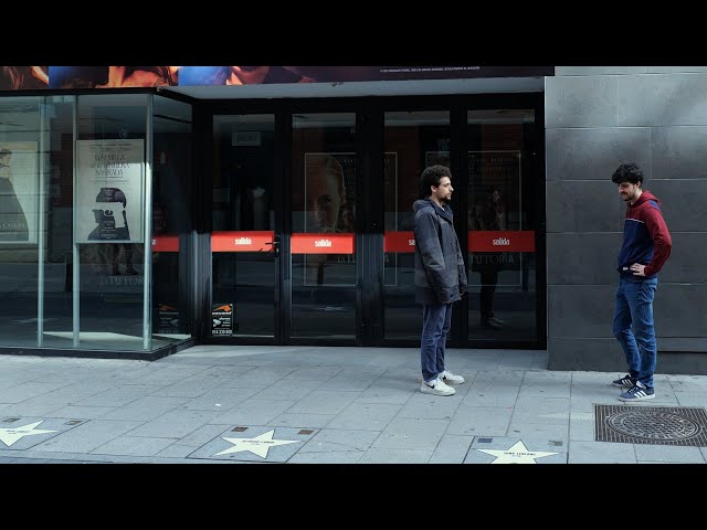 Two friends have arranged to go to the movies, but one of them is late.