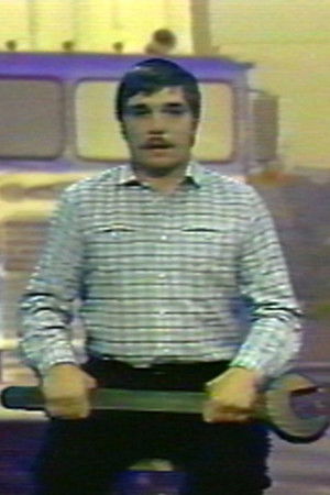 In this narrative performance for video, Burden tells the story of his relationship with a truck named "Big Job." To relate his autobiographical monologue, he sits deadpan before the camera with moving images of the truck behind him. Writes Burden, "During a six-month period, while the artist wrestles with the problem of owning an antique 16,000 lb. freight-truck, Big Job becomes a metaphor for personal insanity. I talk about the 'curse of Big Job,' my foiled plans to transform the truck into a rolling communications command post or a traveling museum, and my difficulty in getting rid of the rig. A true story."