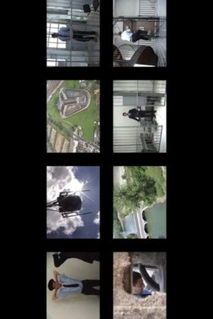 Prison escape by helicopter re-created with multi-screens consisting of eight sequence shots in a loop.