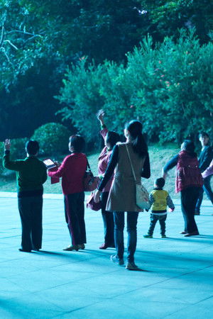 Blue and Red takes place in two different cities, weaving together sequences of night-time spectacles in the public spaces of Guangzhou (where Zhou lives) with footage of the 2013–14 Occupy Bangkok protests that took place while he was visiting the city. In both cities, Zhou concentrates on public spaces as collective experience, highlighting the areas and their occupants in washes of color, particularly the electric blue of LED light, which he contrasts with the surface of a third space, the toxic red run-off of a heavy metal mine in northern Guangdong province.