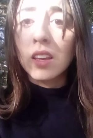 In a park, a girl sends a message to her boyfriend. Something interrupts her.