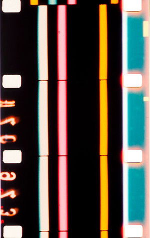 First works with pure color. The slits are organized into vertical Yellow-Red-Blue strips which move laterally across the screen according to a pre-calculated order.