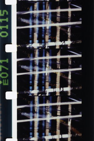 The densest film of the divided-frame group is the aptly titled 1978 Networks, which includes as many as 20 exposures of the same roll of film. Here only one slit was used, but Lebrat combines within one image many narrow strips taken at diverse Paris locations, sometimes seen through colored filters. The enclosed, even claustrophobic space of the strips contrasts with Lebrat’s superimposition of them and with the movement within the strips and by the strips within the frame... (Fred Camper)